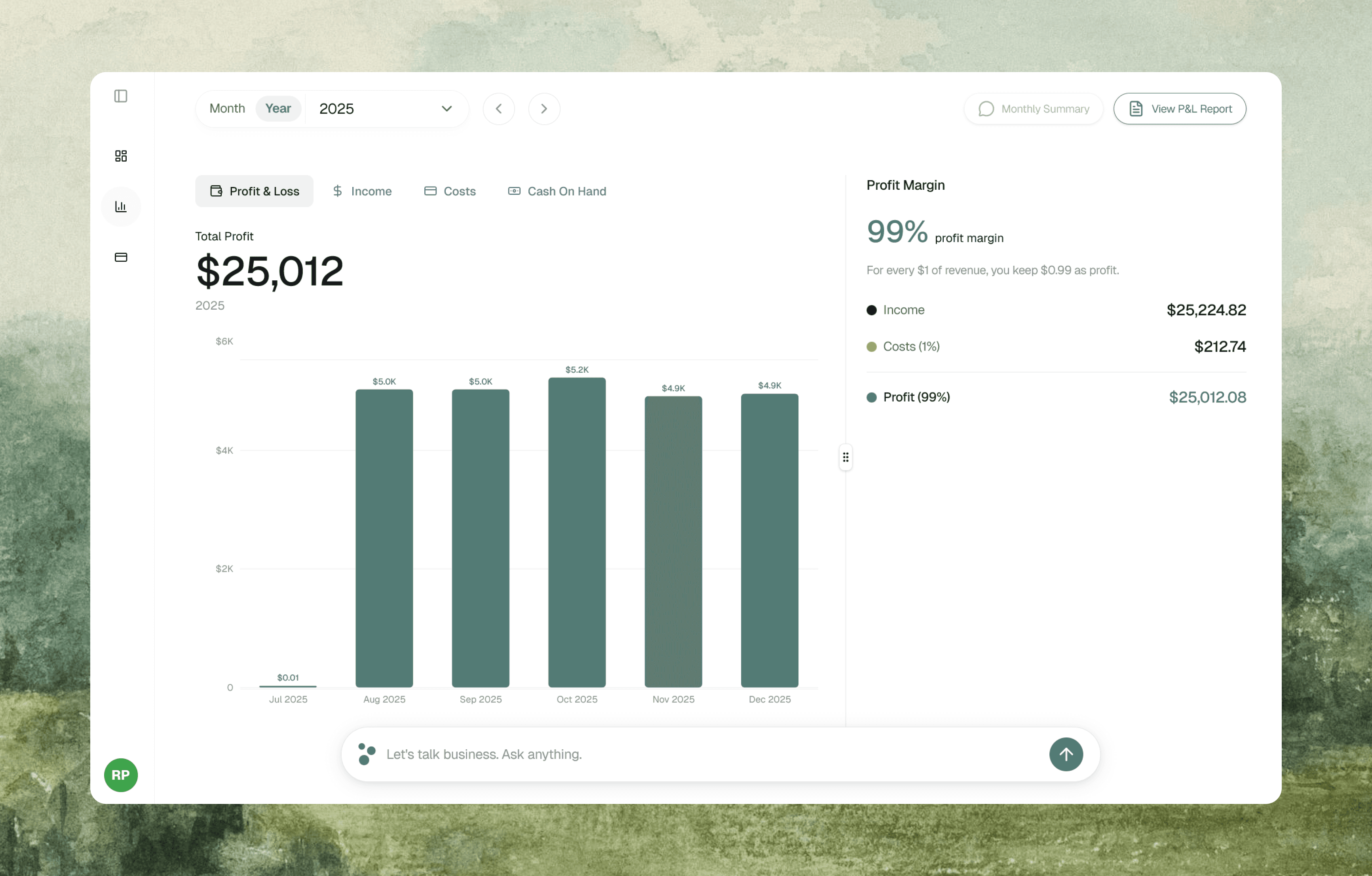 Crystal-clear financial reports you can actually understand, plus chat directly with your data to get instant answers without digging through spreadsheets.