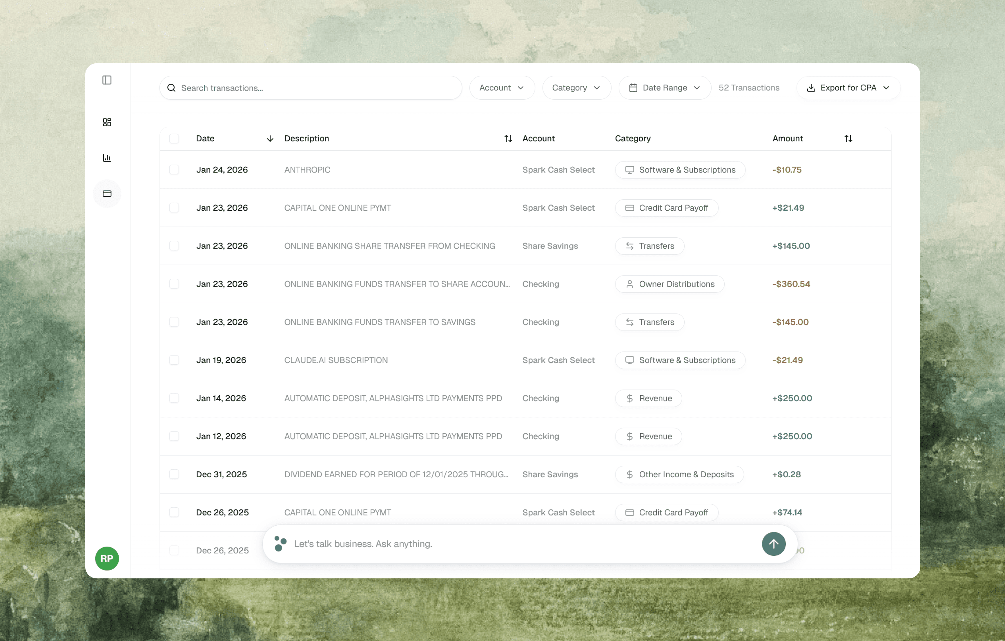 Export everything for your CPA in seconds. We know tax season is stressful. Let's make it easier and faster for everyone.